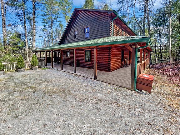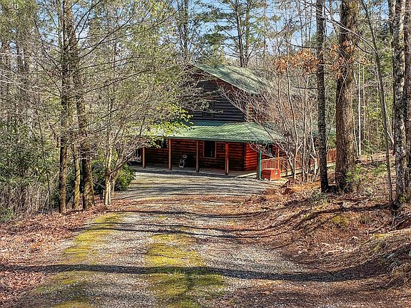 Welcome to your picturesque mountain retreat in the heart of Epworth, GA, just a stone's throw away from the vibrant downtown of Blue Ridge! Nestled amidst the serene beauty of nature, this charming log cabin offers the perfect blend of rustic charm and modern amenities, making it an ideal destination for unforgettable getaways. Step inside to discover a cozy haven with three bedrooms and three full bathrooms, providing ample space for relaxation and rejuvenation. Hardwood floors grace the first and second floors, exuding warmth and elegance throughout, while plush carpeting in the basement adds an extra layer of comfort. Get cozy by the wood burning fireplace on the main floor or enjoy the gas fireplace while playing games in the basement. The loft area has been cleverly converted into a bunk room, providing a cozy retreat for additional guests or little ones seeking their own private sanctuary. This area could also be converted to an office. Outdoor enthusiasts will delight in the abundance of amenities awaiting them. The wraparound porch beckons you to soak in the breathtaking views while sizzling up a feast on the gas grill, perfect for enjoying al fresco dining with loved ones. Indulge in ultimate relaxation on the screened porch, where a luxurious hot tub awaits to soothe your senses. Stay cozy on cooler evenings by the gas fireplace, or catch up on your favorite shows with the outdoor TV, all while being surrounded by the tranquility of nature. Venture down a few steps to discover your own slice of paradise next to Fightingtown Creek, one of north Georgia's premier trout streams. Gather around the fire pit and create cherished memories under the starlit sky, sharing stories and laughter with family and friends. Conveniently located less than 20 minutes from downtown Blue Ridge, you'll have easy access to a plethora of attractions and activities.