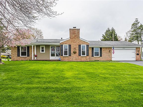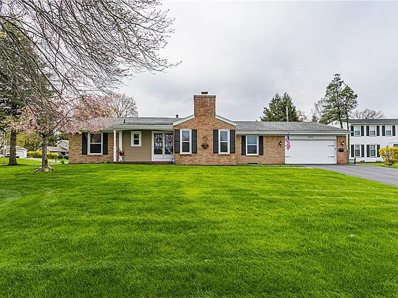 A Perfect Place! This exquisitely maintained ranch offers an unbelievable 2535 sq.ft,, 3 bedroom, 2.5 baths and laundry all on one level. The expansive floor plan is tastefully appointed throughout. Rich hardwood floors, elegant living room with wood burning fireplace, formal dining room, bright and cheery eat in kitchen and a grand-sized family room is the hub of this home. The master suite adjoins the heated year-round sun room. The lush yard in neatly manicured a dotted with lovely flowering trees. Mechanical systems are in optimal condition. All new windows and siding in 2016. New driveway and walk ways. All appliances and generator are included! This home is in pristine condition! The Perfect Place for a Staycation! As Per NYS Mandate ALL SHOWINGs ARE VIRTUAL AT THIS TIME.. LINK TO A 3D VIRTUAL TOUR IS AVAILABLE