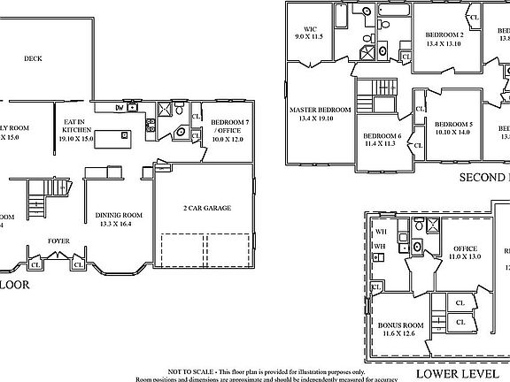 - Ground Level Rooms: Kitchen, Living Room, Family Room, Dining Room, Foyer, Office