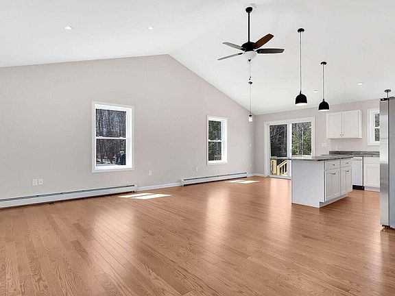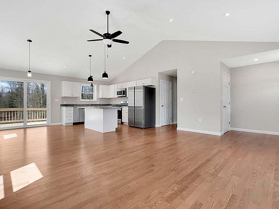New Construction featuring 1288 square feet of living space on one level. Open concept living/kitchen/dining area with cathedral ceiling. Kitchen with classic white cabinets, granite countertops, stainless appliances, island, pantry and dining area with sliders to the back deck. Three bedrooms including a primary suite with full bath, two additional bedrooms and full bath. Full daylight walk out basement. FHW BB propane boiler. Sunny back deck. Almost two acres. Real hardwood flooring throughout with tile in the bathrooms. Move in ready in 30 days. Taxes are to be determined. Don't miss the opportunity to live in a NEW house. Casco Village features a public beach and boat launches, library and active community center. Please make an appointment to view as this is an active construction site. Interior finished photos are to show finish construction. James Way will be paved.