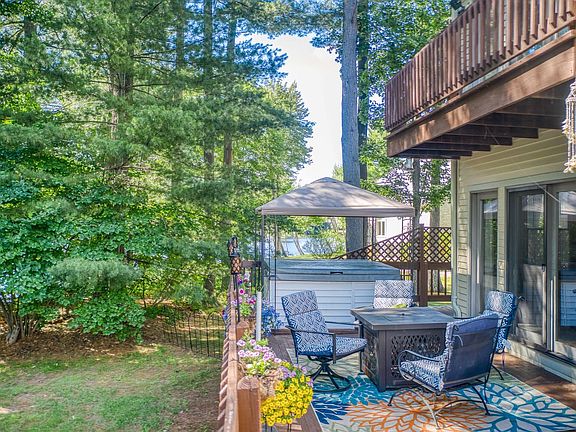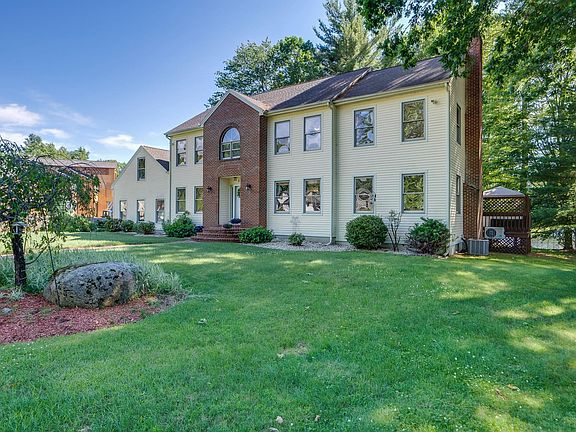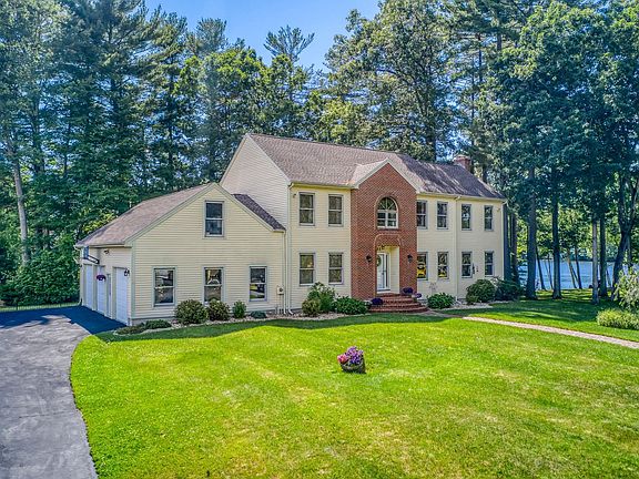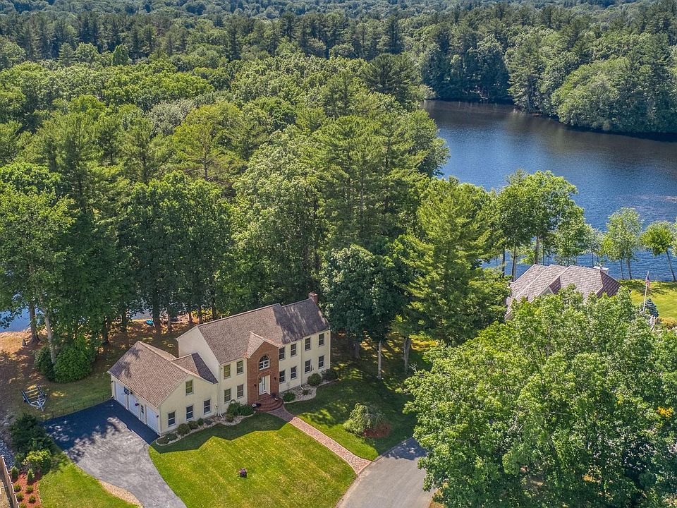 WATERFRONT lake living just 35 miles north of central Boston in this residential cul-de-sac neighborhood of superior quality homes with sunset views, PRIVATE DOCK and 167' of PRIVATE WATER FRONTAGE on Millville Lake. This 4-BED, 3.5-BATH Colonial with attached 3-STALL GARAGE features a spacious eat-in-Kitchen with custom raised panel and soft-close cabinets, granite counters, a beverage serving area with wine cooler and island seating. Eat-in-Kitchen dining area or utilize the front Living Room or the 1st floor Office as a Dining Room. Step-down Family Room with wood burning fireplace. 3/4 remodeled Bath near back door for those going to/from the lake. Second floor features a large Primary Bedroom Suite with vaulted ceiling, walk-in-closet and ensuite Bath and a balcony overlooking the lake. Three add'l Bedrooms, one with a balcony, Full Bath and 2nd floor Laundry, and unfinished storage space above garage w/ expansion possibilities. Lower level Recreation Room w/ built-in bar, pool table, game areas and 1/2 Bath for your summer and/or sports entertainment fun! Relax in the hot tub or on one of the three decks/balconies, sit by the firepit or take an evening boat ride and enjoy your summer and lake living here! C/Air, C/Vac, Irrigation System, TOWN WATER and TOWN SEWER. See Video Tour.