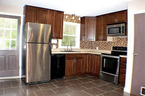 YOUR OWN COUNTRY PARADISE! This bright & inviting cape set on 3.4 acres is the perfect back drop for entertaining & family gatherings. This open concept home was completely renovated 2008, w/hand scraped hardwood floors, fireplace, & generous deck. The oversized kitchen boasts stainless steel appliances, modern dark wood cabinets, & a glass mosaic backsplash, custom travertine bathroom w/Kohler fixtures creating a spa-like ambiance. Experience the quality and value of a well-maintained home!