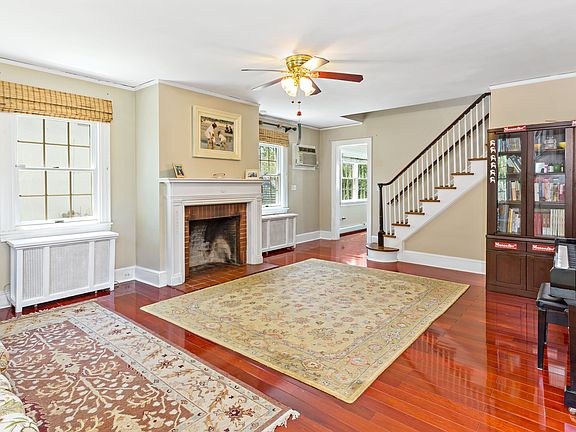 Charming Colonial with living room/fireplace, formal dining room with built-in corner cabinets, modern kitchen with all new appliances, family room with walls of windows, powder room,door to patio. Second floor: master bedroom/full bath, two additional bedrooms/hall bath. Lower level: play area, laundry, storage, utilities. Numerous improvements: new roof, newly finished attic, new furnace, new water main line to street and all new mahogany floors. Situated on a tranquil street with that desirable "in-town" location - walk to school, village, park and transportation.