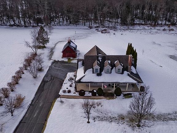 Welcome to your dream home in this beautiful country setting! This stunning cape offers 3 bedrooms and 2.5 baths nestled on 1.39 acres of land in a peaceful neighborhood. The first level bathes in natural light & has HW floors throughout w/ an open floor plan. The kitchen has granite countertops, an oversized island, dining area w/ a bay window & access to the sizeable deck looking over looking the large, serene backyard. Living room has vaulted ceilings and a floor to ceiling stone fireplace w/ a new flue liner & pellet stove insert. Main bed has a full bath & walk-in closet. 2nd level has an oversized bedroom, half bath, & access to large attic that can be easily finished into another bedroom/family room,etc. The basement has a laundry room, workshop area, & finished family room w/ vinyl floors & track lighting. Central air & vac, & all new blinds throughout. Enjoy the wrap-around front porch. Being sold as-is. More pics coming soon! Don't miss you chance to be the lucky new owner!