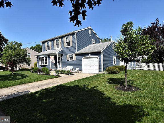 Move in condition!!! Very well maintained, one owner, 3 bedroom, 2 1/2 bath, 2 story Colonial with a family room, deck, garage and finished basement on a quiet street in Delanco NJ. Before you even enter house, you see that it has been well taken care of, there is nothing out of place. The first floor features a living room, dining room, kitchen, family room, powder room and a mud room that leads to the garage. The 16 x 13 living room features hardwood flooring, wide crown ceiling accent and a 9' wide bow window that fully illuminates the room. The adjacent dining room is spacious and easily accommodates a full-size dining room table. The eat-in kitchen includes stainless steel appliances, bevel edge countertops, tile backsplash and a unique dining peninsula, great spot for morning coffee. The kitchen overlooks the family room which features a new remote-control gas fireplace insert, 2 skylights and a sliding glass door that leads to a 20 x 12 composite deck. The deck overlooks and has steps down to the back yard and provides a great place to entertain. The second floor has a primary bedroom suite with two walk in closets (and full bath. Two additional bedrooms and a full hall bath complete the 2nd floor. The basement is 2/3 finished (with a utility area/heater, water heater, laundry and storage) making up the unfinished portion. The fully-fenced rear yard features professional landscaping, including beautiful birch trees, with a cute garden shed nestled in the plantings, AND a concrete basketball court, and fire pit with sand. Upgrades include a newer roof, siding, windows, window molding, flooring, kitchen, rear deck, heater, AC, and bathroom accents. Location is a short walk to the scenic Delaware River, Pennington Park, and downtown shops and eateries. It’s very hard to find a home in this exceptional condition. Schedule a showing....you won't be disappointed!