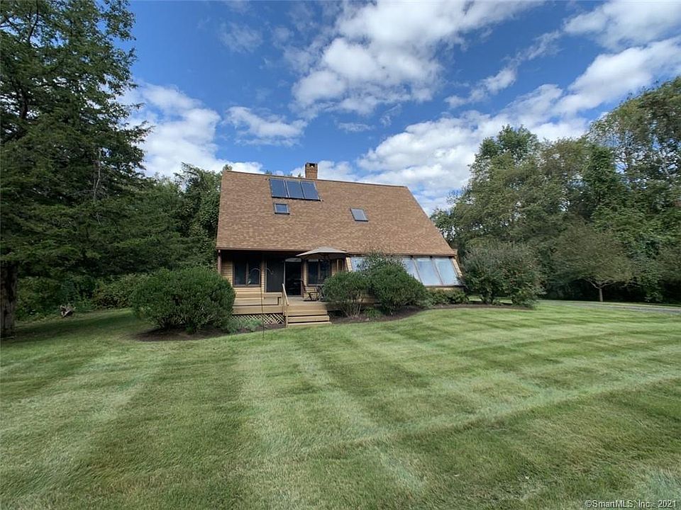 Enjoy country life and nature. This home has a peaceful and tranquil setting, bountiful wildlife, and trails to cross country ski or hike right out the front door on trails within the Pachaug State Forest. A seasonal brook offers opportunities for landscaping or creating a shade garden. Sit on the deck and enjoy the sounds of the natural world. The home owner built the home and added unusual details, including a wooden ceiling in the spacious living room. Cozy up to the pellet stove in winter or be warmed by the sun streaming in windows. Solar panels on the south facing roof heat the water and adding more could heat the house, making it completely energy efficient. One of 3 bedrooms is on first floor with full bath for easy living. Full basement adds another possible 1,000 sq ft of living space . House has generator. Be in nature yet close to everything this area has to offer. I-95 and Amtrak train are easily accessible. Second floor Master bath is not finished other than plumbing and plywood shell.
