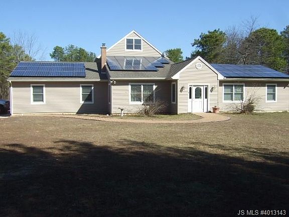 Tired of Noisy Neighbors! Surround yourselves with the serenity of the pine forests. This 3334 sq ft home sits on over 2 acres & backs up to pinelands. Home was expanded & rebuilt in 2008. Gorgeous kitchen with center island, pull out cabinets, wine rack, stainless steel appliances, Bosch stove, Sutter Oak flooring throughout. 2 wood/coal burning stoves. Spacious family room leads to scenic deck. Large master bedroom is downstairs & has full bath with jetted spa tub + shower stall. There is another 1/2 bath on 1st floor. 2 huge bedrms with full bath upstairs.Home has baseboard oil heat & central air.Tank is above ground in basement.60 solar panels SAVE BIG on electric bills. 400 amp service in house & 200 amp in garage, run your power tools, have a great workshop! 3 car attached garage has hookup for additional bathroom. Garage, basement &stand up attic offer plenty of storage & possibilities.