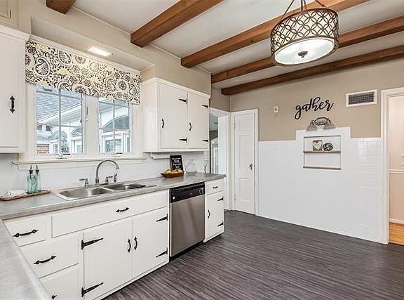 Unique and spacious Cape Cod style home in the tree-lined oasis of Juanita Place! This well loved and maintained home is sure to delight. From the original woodwork to custom built-in cabinetry to multiple outdoor entertaining spaces this home has it all. A beautiful formal entry will be a treat for your guest to be welcomed into. Gleaming hardwood floors in the large living room offers multiple style options. The formal dining room is something out of a storybook with it's on display storage as well as an enviable butler cabinet. The sunny kitchen is spacious with lots of cabinetry and room for a personalized island. A large sunroom with arched windows and exits to the patio and side entry of home is a great place for indoor/outdoor entertaining. The hall bath is vintage yet timeless. Upstairs you will find a master bedroom oasis. The large bath has access to the master as well as the hallway. Lower level has lots of space for entertaining and it's own bathroom.