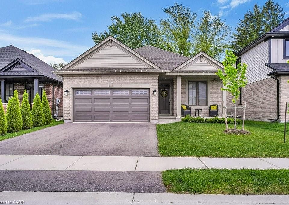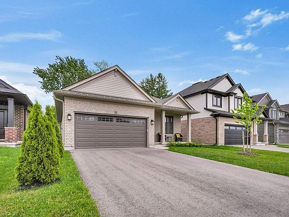Prepare to fall in love with this Hayhoe-built bungalow, nestled in the welcoming town of Tillsonburg. Built in 2022, this thoughtfully designed home blends modern comfort with timeless style. With 3+2 bedrooms, 3 full baths, and a fully finished lower level, there’s room here for every season of life. The kitchen is a true showpiece — quartz countertops, gas stove, farmhouse sink, pantry, and a generous island under statement lighting make it perfect for both everyday living and entertaining. The open layout flows into the dinette and great room, complete with a cozy gas fireplace and walkout to the deck. Additional features include 9' ceilings, engineered hardwood, soft-close cabinetry, ceramic floors, reverse osmosis system, and gas hookups for the dryer and BBQ. The main-floor laundry adds convenience, while the front bedroom offers the ideal spot for a home office. Retreat to the Primary suite with its spacious walk-in closet and spa-inspired ensuite. Downstairs, the fully finished lower level is designed for fun and flexibility — a rec room ready for movie nights or game day, two extra bedrooms, a full bath, and ample storage. Life in Tillsonburg offers the best of both worlds: small-town charm with excellent schools, shops, and cultural attractions, plus easy access to Hamilton, London, Woodstock, and Kitchener. This home is move-in ready, beautifully finished, and waiting for you. Come see how effortlessly your lifestyle will fit here. Immediate closing is available.