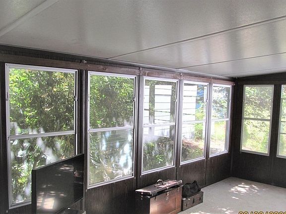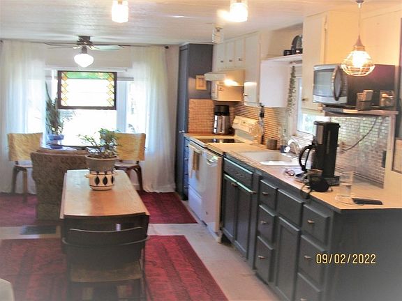 Surrounded by nature, this 2- bedroom manufactured home provides a versatile layout. Large brick surround fireplace highlights this open floor plan. Eat-in kitchen has charming Bay window, updated appliances & countertops. Carport leads to 2nd. entrance onto huge-screened porch. Storage shed onsite. With a few finishing touches/improvement this would be the home you have been looking for. Many community updates including recently paved roads & homeowner parking spaces throughout park. A great opportunity to own in this over-55 co-op community!! As is sale.