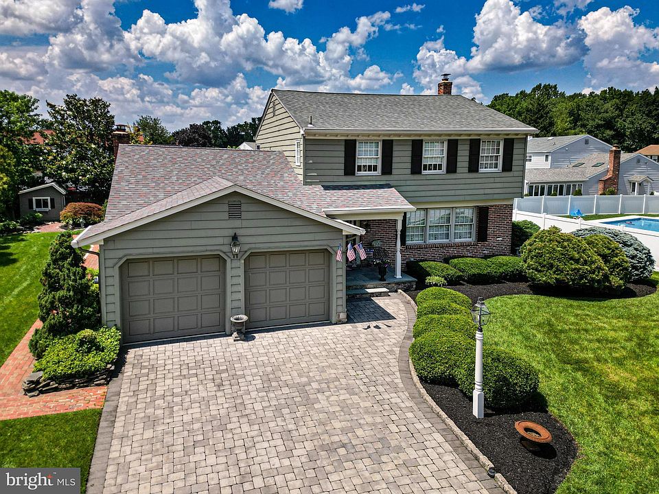 Located in the heart of Marlton, in the Brush Hollow neighborhood, sits this picture perfect one-owner colonial on a quiet block just minutes to just about everything Marlton has to offer. Walk to award winning schools and enjoy a thriving shopping and restaurant scene in just a short car ride. This lovingly maintained Bennington Model offers the neighborhood's largest floor plan and includes an expanded 3 seasons room for additional living space. The exterior grounds include manicured lush landscape with groomed gardens, full underground irrigation and beautifully designed hardscaping. A full custom paver 2 car driveway awaits up to 4 vehicles and the wrap around paver walkway delivers more lush scenery and access to the shed, back yard and additional entrances to the home. Just look at those photos from Summer of 2023. Once inside, your greeted by a spacious foyer that leads to the formal living room accented with crown molding and a large bank of windows affording an abundance of natural light. The formal Dining Room handles multiple large pieces of furniture without compromising space and convenience. Hardwood floors highlight both of these rooms and transition into a magnificent kitchen space that includes a full stainless steel appliance package, granite counter tops, cherry wood cabinetry, tiled backsplash and wide plank hardwood floors. Recessed lighting an upgraded chandelier and custom window treatments round out a long list of amenities. Just steps away is a large Family Room with beamed and vaulted ceilings, a full wall brick gas fireplace with custom mantel and upgraded wall to wall carpeting. Connected to this family room is an owner added 3 Seasons room that offers limitless possibilities and overlooks the beautiful lawns and landscaping of the rear yard. A full wall of windows, exposed beams, lofted ceilings and gorgeous slate floor allows this property to shine above all others. Rounding out the first floor is a walk in pantry, updated half bath and a full laundry room with washer and dryer included. Interior access to the 2 car garage with auto openers provides easy access on those rainy and snowy days and a recently installed Hi Efficiency HVAC and HW Heater will provide years of worry free comfort. A full unfinished basement settles any debate on storage options as it's a blank canvas for future finished space or creative storage options. The 2nd floor includes 4 generous spaced bedrooms along with an updated/upgraded hall bath and an owner's suite with multiple closets and an en suite bathroom that is also updated and upgraded. Master craftmanship, impeccable maintenance, no pets, non-smoker and an abundance of living space in one of South Jersey's most coveted addresses. We welcome qualified buyers to attend the Open House on Sunday Feb 4th from 1-4pm. Put this one on your short list, it won't last long!!
