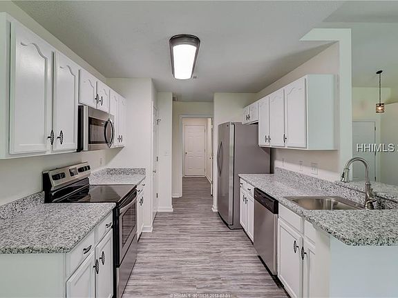 This home has just been totally remodeled. All NEW granite tops in kitchen w/ NEW SS appliances NEW vanities in baths. NEW Vinyl plank flooring thru-out, w/ exception of bedrooms which have NEW carpet. Freshly painted. NEW light fixtures. NEW faucets. Desirable split bedroom floor plan. Lovely private lagoon view lot on a cul-de-sac!! Located near the Cinemark cinemas, upscale bowling alley and Publix center. The school districe is River Ridge Academy and May River High School. Just a short drive to Hilton Head's beaches!