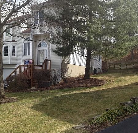 This updated 2 bedroom, 2.5 bath multi-level desirable end unit in Skyline Village is a must see! It is bright and airy with lots of windows and warm and inviting with its neutral color scheme. Home features large entry foyer with walk in coat closet. Features include living room/dining room combo, wood burning fireplace, cathedral ceilings, skylight and first floor powder room. The kitchen offers granite counter tops, breakfast bar, separate dining area and sliding glass doors leading to a large, expanded deck and nice yard for entertaining. Second floor consists of large master with sitting area, full, updated bath and 2 spacious closets, as well as a guest room and 2nd full. Ground floor has attached garage, laundry and den area. Lots of windows with custom window treatments throughout.