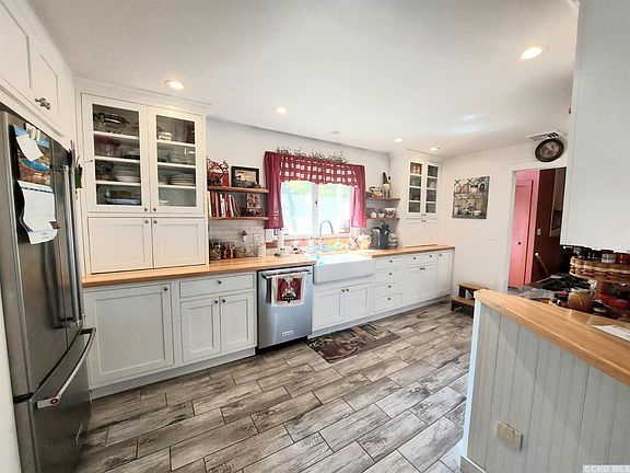 Located in the historic Kinderhook Village, yet tucked away on a picturesque cul-de-sac. This recently renovated & impeccably maintained 3 bedroom/4 bath home sits on an acre+ with a large outbuilding (radiant floor heat, water, & electric). Home's layout lends itself to an in-law suite/separate guest area/home office. Setup for entertaining inside as well as out (enjoy the outdoors by the fire pit & hot tub). 2 Bedrooms on upper level, baths on each level, & 3rd bedroom & office on the lower levels. Hardwood floors in the upper level & main living area. The owner has done all of the heavy work since 2015; radiant floors & BBoard heat in lower level, energy efficient; new roof, new A/C, most windows new (Pella), all new mechanicals, insulation, electric, septic system, central vac, invisible dog fence. Close to Hudson & Chatham, Albany about 25 mins. Railtrail close by! The outbuilding had fire damage in Dec 2024 which needs repairs. So many possibilities, come take a look.