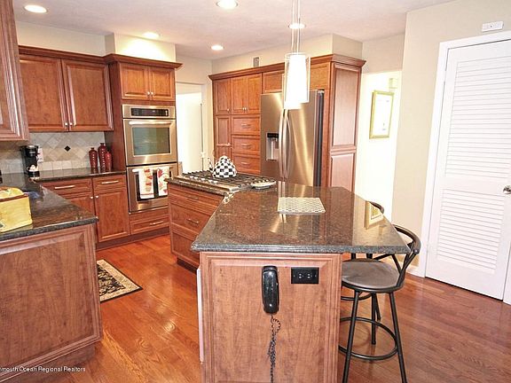 Gorgeous 4 bedroom 2.5 bath Colonial with finished basement and 2 car garage. This well maintained beauty features large spacious rooms, hardwood flooring throughout, updated kitchen with custom cherry cabinets, stainless appliances, and granite counters, central vacuum, huge laundry room with storage . The solarium over looks the private backyard with trex deck, mature landscaping and gas fire pit. The central location makes this home convenient to restaurants, walking distance to shopping and express buses to NYC. Manalapan schools are ranked very high and the sports programs are amazing. Come and take a look for yourself. This home has a full house American home shield warranty .