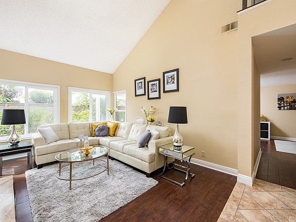 Want the ideal location? This private cul-de-sac location is next to the park and boasts fantastic curb appeal with soaring palm trees. High vaulted ceilings greet you upon entry to this beautiful 1,470-square-foot, 2-story home, and a cozy fireplace in the living room lends an air of contented charm. As you walk into the hallway and enter the family/dining room area and the kitchen, you will find a large sliding door that leads you to the private backyard perfect for entertaining. The updated kitchen is the perfect place to cook with stainless steel appliances and gorgeous granite countertops. With three bedrooms, two and a half bathrooms and an abundance of natural sunlight, this truly makes for the ideal family home. Other features in this incredible home include vinyl double-pane windows, plantation shutters, laminate wood floors in the downstairs living area, natural stone floors in the bathrooms, walk-in closet in the spacious master bedroom and updated master shower. Enjoy the convenience of an attached two-car garage with epoxy floors and storage cabinets. Very safe and family-friendly, this home is within minutes to schools, shopping, restaurants, parks and hiking trails and is within a mile of Rancho Santa Margarita Lake and Beach Club. Enjoy the luxury of three pools in this wonderful community with very LOW HOA dues.