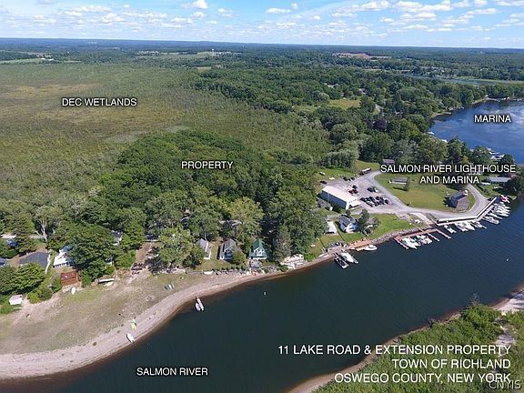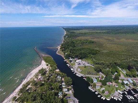 Excellent opportunity for developers, second home buyers for private compound or investors on the waterfront at the mouth of the Salmon River overlooking Lake Ontario. Located in the heart of Salmon Fishing Country, sales includes two parcels totaling 6.43 +/- acres with 50 feet of waterfront, and will only be sold together. Site consists of 6.08 +/- lightly wooded acres, zoned Residential Recreation (RR) and .35 +/- acres zoned Residential Cottage (RC) with a 1,294 +/- square foot, 4 bedroom seasonal cottage and existing boardwalk in place in the protected Port Ontario harbor. Panoramic views and gorgeous Lake Ontario sunsets await you. Based on current zoning, a preliminary site plan is available to develop 18 townhouse/condominium units, along with a with a waterfront pavilion. Land is relatively flat with public water, utilities and wi-fi service. Area amenities include world-class salmon fishing, dock can accommodate larger vessels and there is a sandy swimming beach across the river, kayaking, sailing and adjacent marina with a historic lighthouse built in 1883.