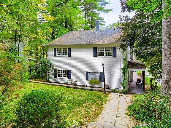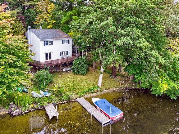 Stunning views of Thompson Pond from this 8 room, 3+ bedroom, 2 full bath waterfront retreat! Main floor features cabinet packed kitchen with gas range and granite counters, dining peninsula, formal dining room, spacious first floor family room and living room both with magnificent views of the water and updated bath with jet tub! Living room features fireplace, hardwood floors and patio doors that both open to large waterfront deck to create indoor/outdoor experience! Second floor features 4 spacious rooms including main bedroom with beautiful water view and walk-in closet, 2nd bedroom with water view, and 3rd bedroom with bonus room attached, currently being used for game room and exercise room and full bath with second floor laundry! Exterior features 50 feet of sandy waterfront with new Tommy Dock! Other features include recent roof, title V in hand, hardwired for generator, double oil tank, paved driveway, decorative retaining walls and vinyl siding.