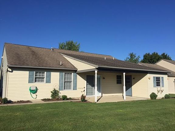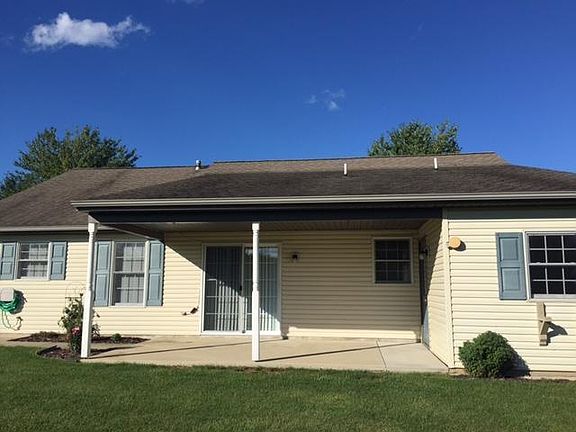 Easy living! Cozy ranch w/cathedral ceilings, tile back splash, newer A/C and water heater, spacious shed built onto the house. Nice covered back porch on a level lot.