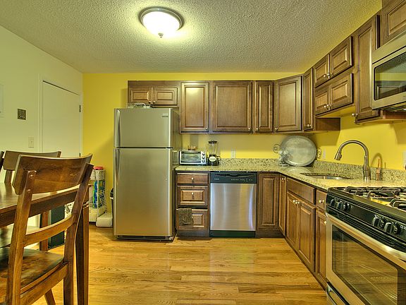Nicely appointed 2 bedroom condo, 2nd floor end unit. It is featuring New kitchen cabinets, granite counter tops, SS appliances and new hardwood floors in kitchen living, totally renovated bath with tiled floor, new interior doors and freshly painted. Balcony off living room. located within minutes to shopping plazas and quick access to highway! Condo fee includes heat, hot water and cooking gas, master insurance, exterior maintenance, landscaping, snow & trash removal, water & sewer. make an apt today this one won't last. GREAT LOCATION! CLOSE TO SHOPPING, HIGHWAYS. OPEN CONCEPT KITCHEN LIVINGROOM