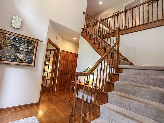 Pittsford Schools! Stunning colonial on a private drive & intimate 1.6 acres! Gorgeous exterior sure to catch your eye! Large windows & a beautiful view from every room! Many updates including: furnace & AC, architectural shingle roof, underground sprinkler system, patio off walkout basement & walkway to front door, finished basement w half bath & kitchen, windows in great room, indoor & outdoor light fixtures, security system. Spacious kitchen w an island & plenty of storage & counter space excellent for entertaining! 9ft ceilings on the first floor! Serene master suite w natural light and a sizable master bath! Three bedrooms with ample closet space! Additional 60 sq ft room on the second floor for storage. The professionally finished lower level is an excellent value with over 1200 sq ft, walkout to the rear yard, powder room, kitchen and gas stove! Direct access to Crescent Trail! Home Warranty Provided!