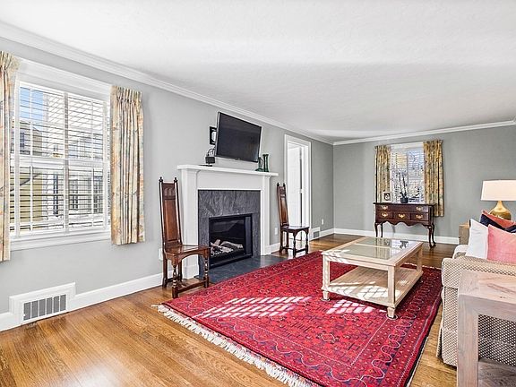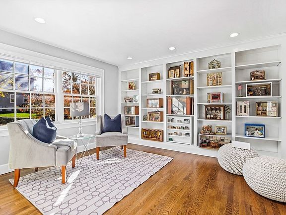 Classic Center Entrance Colonial. Enter through the front door into the foyer. To the left is the front-to-back living room with a gas fireplace that opens into the newer den featuring a wall of built-in shelving. The formal dining room leads into the updated kitchen with quartz countertops, stainless steel appliances, peninsula seating, and exterior access. There is a cozy study that connects to the bright sunroom with doors to the deck, patio and backyard. Also on this level is a full bathroom. On the second floor is the spacious primary bedroom with its newly created bathroom, a wonderful walk-in closet and laundry. There are two additional bedrooms, one with access to a large bonus room. Also, on this level is an additional full bathroom with a double vanity. The basement features a finished room, utilities and ample storage. Both the back and front yards are beautifully manicured with mature plantings. Close by are Newtonville’s shops, restaurants and the Commuter Rail.