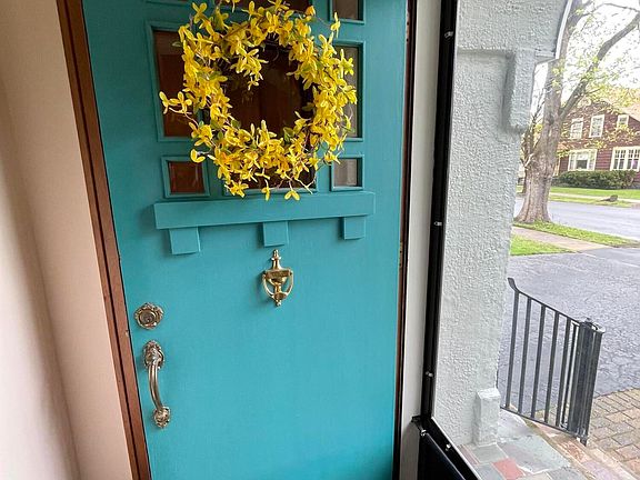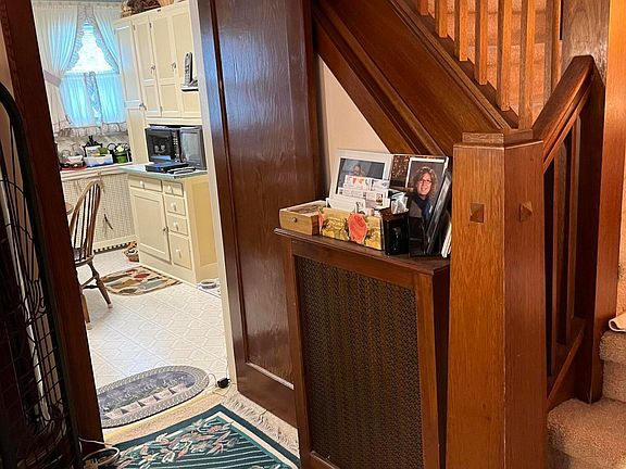 Prepare to be charmed! Natural hardwood staircase, hardwood floors, fireplaced living room and cozy side screened in porch are just a few of the quaint features here! Inviting foyer into spacious fireplaced living room, formal dining room, 1/2 bath and applianced eat-in kitchen downstairs. Back entry mud room leading to a sunny backyard patio! 3 large bedrooms up all with ample closet space and shelving Nice den/office up plus full tile bath and even a walk up floored expansion attic. Garage is attached and entire home has been well cared for with many updated features. Lovely landscaped lot in a very desirable location close to school and shopping and a quick commute to New York State Thruway.