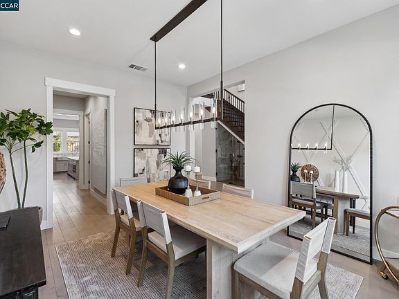 Built in 2021, this beautifully crafted traditional-style home spans 4,208 square feet on a spacious 0.22-acre lot. The main residence offers four bedrooms and 4.5 baths, with an attached ADU that adds a fifth bedroom and an additional 1.5 baths, perfect for flexible living. As you enter, you’re welcomed by soaring ceilings, a formal dining room, and a junior en-suite. The chef’s kitchen is both beautiful and functional, seamlessly opening to a living room anchored by a gorgeous fireplace. Designed for those who appreciate both style and practicality, the kitchen features top-of-the-line appliances, generous counter space, and a separate butler’s pantry/wet bar. Upstairs, retreat to the luxurious primary suite with spacious walk-in closets and a meticulously designed primary bath. Two additional en-suite bedrooms and a convenient laundry room complete this floor. For added convenience, this home includes a large three-car garage, mudroom, ample outdoor space for entertaining, Smith & Noble blinds, and fully owned solar panels. Ideally located just moments from shopping, scenic trails, downtown Walnut Creek, dining and entertainment. Let's make this house your home.