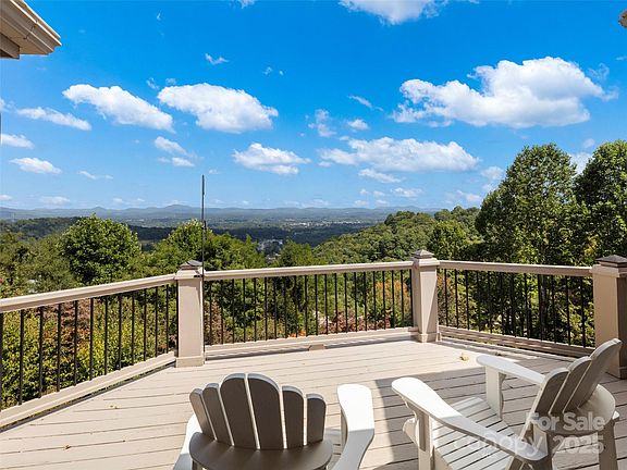 Las Brisas, feel the breeze and enjoy tranquility as you breathe in 180 degree long range and city views that are spectacular and will make you pause! Expansive windows all along the back in the kitchen, screened porch, den, living room and master bedroom and bath all have views as well as the lower ensuite bedrooms and rec room! Located at the top of Sky Village in historic Laurel park, this home is on a quiet cul de sac with flat driveway, and a 2nd drive ample for parking for entertaining. The updated kitchen with large island has access to the screened porch and side porch for wonderful open flow. The price allows for the buyer to update baths to their taste There are trails along the rear lot to allow garden spaces and walks with privacy over 1.5 acres