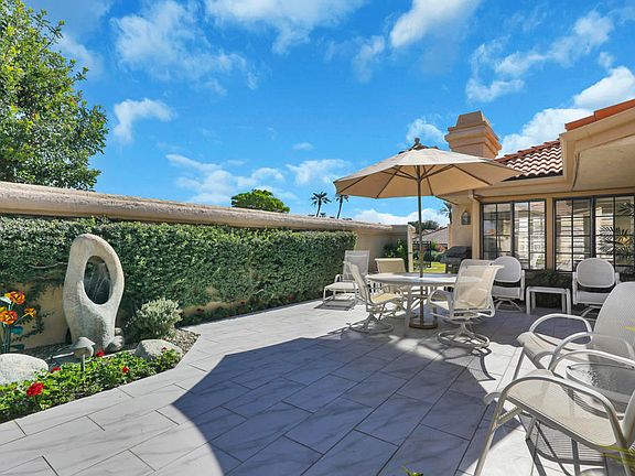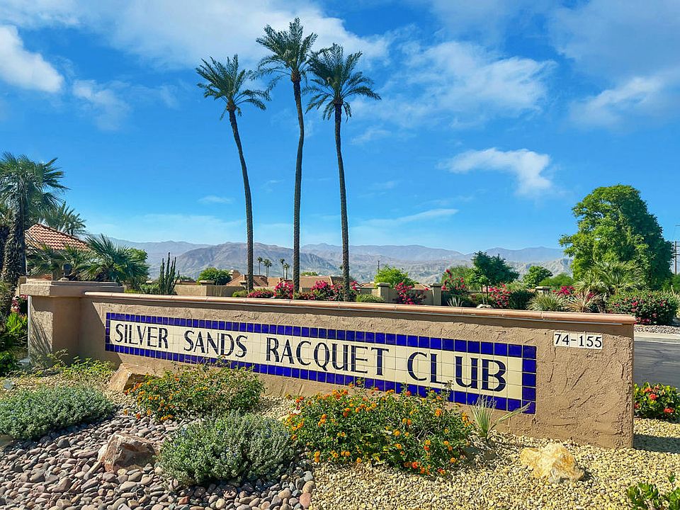 This enticing end-unit condo boasts a larger floor plan of 1750 square feet and includes 2 bedrooms and 2 full bathrooms. The 'original model home' in the desirable community of Silver Sands Racquet Club, is now available at a great price! With two fireplaces and two large patios, this high vaulted ceiling charmer, is oriented facing south-east for ideal sun exposure and views. The new homeowners can enjoy a private thriving tennis and pickle ball Club that also offers an exceptional fitness center. Located in a fantastic location in Palm Desert, right next to the JW Marriott Resort and Spa, close to shops, restaurants, groceries, golf and only 5 minutes from El Paseo...this is a value proposition for the taking!