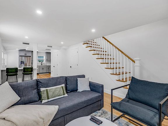 Feel at home in this stylish and spacious townhouse just minutes from downtown Boston. Recently renovated with all new furnishings, this three-floor home offers a private entrance and off-street parking for two cars in tandem. Conveniently located, it's a short walk to the MBTA bus, local restaurants, and a quick drive to Encore Casino, Logan Airport, and downtown Boston. The beautifully renovated townhouse features a modern kitchen with quartz counters, stainless appliances, stylish cabinets, and a breakfast bar. The open living space includes a dining set and a living room with a 65-inch TV, perfect for gatherings. High-speed Wi-Fi supports business video conferences and streaming services. The home is light and bright with large windows, and includes three bedrooms, each with a queen bed, and a stunning bathroom with a walk-in rain shower. A front-loading washer and dryer are available in the basement. For family-friendly accommodations, a luxury Pack-n-Play or other children's furnishings are available for an additional charge, subject to availability. Located in a vibrant area, this townhouse is just a 2-minute walk to the MBTA bus, with great local restaurants within 5 minutes. It's a 5-minute drive to Encore Casino, 10 minutes to Logan Airport, and 15 minutes to downtown Boston and TD Garden. The neighborhood offers a rich blend of history and contemporary attractions, with easy access to public transportation, walking tours, museums, and more. Smoking is strictly prohibited, and guests will be fined and immediately evicted for smoking or vaping in the home or on the property. No parties, events, performing artists, or bands are allowed at any time, which are cause for eviction with no refund. Exterior security cameras are present for your safety. Pets are not allowed in the property. The home is equipped with high-speed Wi-Fi, making it ideal for remote work and business video conferences.
