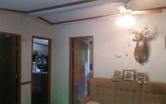 Private & quiet setting. Come & be surrounded by woods on this 3.08 acres. Relax on the front deck. The land was purchased in 1986 & a new doublewide was placed on the property in 1998. Cute & cozy with open floor plan. there is a 2 car garage on the property; seller will tear it down if desired. There are 2 sheds also. Curtains stay.