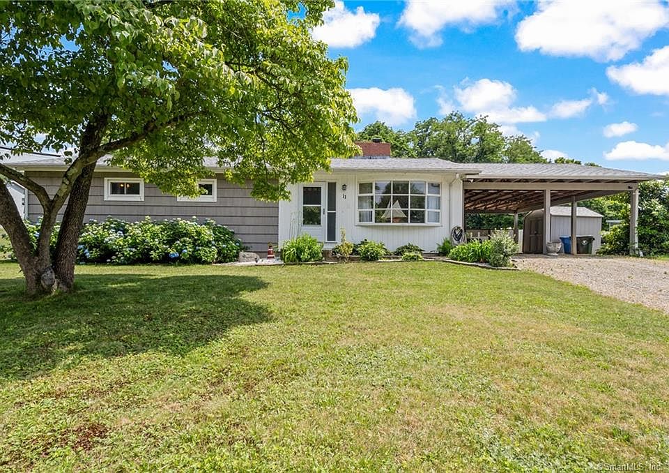 Tucked away in a quiet neighborhood, this 3 bedroom, 1.5 bathroom ranch is ready for you to move right in. Hardwood floors welcome you into the living room that is filled with natural light. Moving into the kitchen you will find plenty of cabinets, stainless steel appliances (including a brand new dishwasher, and ample counter space. A brick fireplace adds a warm and inviting feel to the dining area. Down the hall, you will find three bedrooms, each with plenty of closet space, and the full bathroom. Step outside to enjoy the privacy of the partially fenced backyard, complete with a fire pit. The oversized carport can easily double as a covered entertaining area. All of this conveniently located off Rte 12, close to shopping, the submarine base, and casinos.