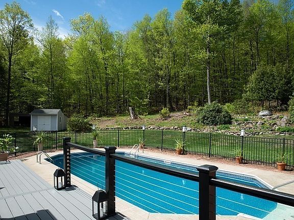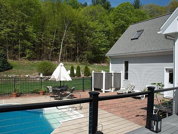 BEAUTIFUL COUNTRY ESTATE ON THE SIDE OF A MOUNTAIN WITH INCREDIBLE VIEWS ON 68 PRIVATE ACRES. A flexible floor plan with 5 bedrooms with room for study, sleep, entertaining and storage, 3 1/2 spacious bathrooms, a Library, and a kitchen that opens into the family room access to 1 of 3 private Trex decks for spectacular views! The master bedroom, complete with walk-in closet and en-suite. Enjoy a refreshing swim in the pool on a hot summer day after a hike on abundant trails within your land, complete with wild turkey, deer and all that nature has to offer as well as 3 open fields for planting. With an additional detached 2-car garage, a fabulous studio or exercise space, use your imagination! Perfect for a family or as a retreat, this home is ideally positioned to enjoy the proximity to all area colleges, cafes and restaurants, shopping centers, and a selection of premier schools. 10 Minutes to I-91, 2 hrs to Boston, 3 hours to NYC