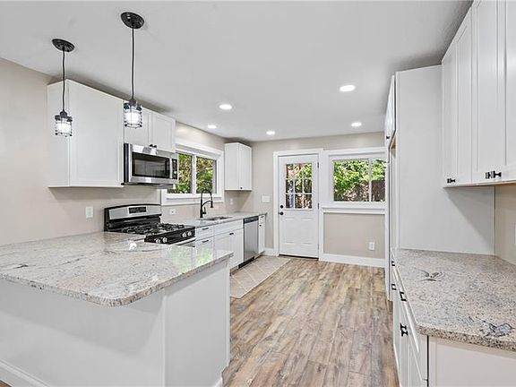 Stunning complete renovation in Shaler tucked away at the end of a dead end street. You'll love the attention to detail, open floor plan and modern updates. ALL NEW: LVP flooring, carpeting, windows, doors, garage door, electrical, plumbing, interior and exterior paint, HVAC, hot water tank, indoor French drain system with a lifetime warranty, light fixtures, paved driveway. Gorgeous kitchen with white cabinetry, granite counters, stainless appliances- open to the living/dining area. Main floor bathroom completely remodeled with amazing finishes. Two bedrooms on the first floor. The lower level features a large living space, and a huge bedroom with ensuite bathroom with double bowl vanity & large walk-in glass door shower! Enjoy the outdoors in any weather with a huge covered patio! Private back yard! Extra long drive way for tons of parking, one car garage plus a car port area for additional covered parking!