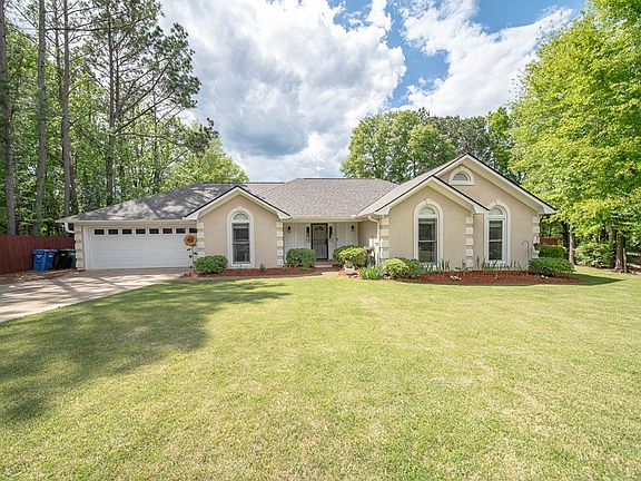 Tucked away at the back of a quiet cul-de-sac, this beautifully maintained 3-bedroom, 2-bath home offers a spacious, functional layout with thoughtful upgrades throughout. A brand-new roof was installed in March 2025, and the home features gutter guards for added durability and convenience. Step into a large, sunken family room with a wood-burning fireplace and removable electric insert—perfect for cozy gatherings. A formal dining room with vaulted ceilings and a specialty window offers flexibility as a dining space or home office. The bright eat-in kitchen features floor-to-ceiling bay windows, granite countertops, stainless steel appliances, a smooth-top stove, dishwasher, tile backsplash, and durable tile flooring—ideal for everyday living and entertaining. The oversized primary suite includes a large bedroom with floor-to-ceiling windows, a walk-in closet, and a spacious bath with a soak tub, separate shower, double vanities, and a skylight. Two additional bedrooms and a full guest bath provide plenty of room for family or guests. The oversized laundry room, located off the kitchen, also functions as a mudroom with access to the 2-car garage. Additional features include a large storage room off the garage, two front coat closets, and ceiling fans in every bedroom. Step outside to a large deck overlooking an expansive, fenced-in backyard with a privacy fence—perfect for outdoor entertaining. The front yard offers an underground automatic sprinkler system, while front, side, and rear flood lights add security and convenience. The home also includes a built-in security system covering all doors and smoke detectors. Just a 5-minute drive to Whittlesey Blvd shopping and near dining, schools, and Fort Benning, this move-in ready home blends comfort, style, and location in one perfect package.