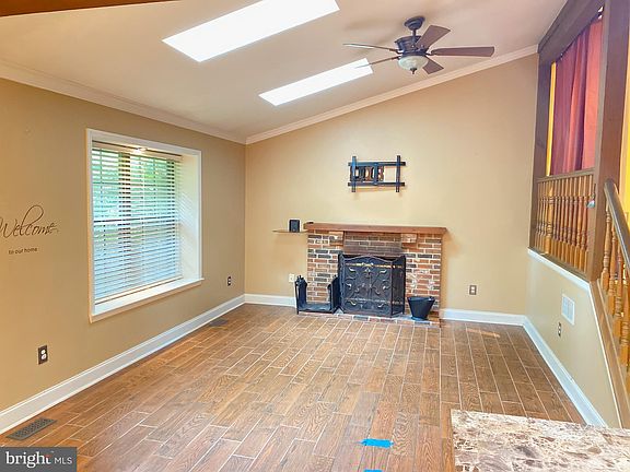 This three-bedroom, two full bathroom home has a serene peaceful wooded fenced-in yard, with hassle-free hardscaping. Upon entry, a spacious foyer greets you, and leads to the rear of the home where an open-concept living, dining, and kitchen combo can be found. Wood-look tile flooring flows throughout the main living area here and skylights within the vaulted ceilings add extra nature light throughout. Crown molding and a wood-burning fireplace also add a nice touch to the space. The kitchen boasts ample cabinetry space, an island for extra storage, and the stainless steel appliances complete this room beautifully. Sliding glass doors lead from the dining room to the hardscaped patio overlooking the private yard. Back inside, a loft off the living room could make an excellent home office or play space for the kids. Back towards the front of the home, three bedrooms and two full bathrooms can be located. The fireplace has a heat pump, so you are able to keep cost low during those cold winter nights. Extra storage is offered in the two attics, 4 ft. crawl space, and rear shed. Minutes from the Atlantic City Expressway, this location is ideal!