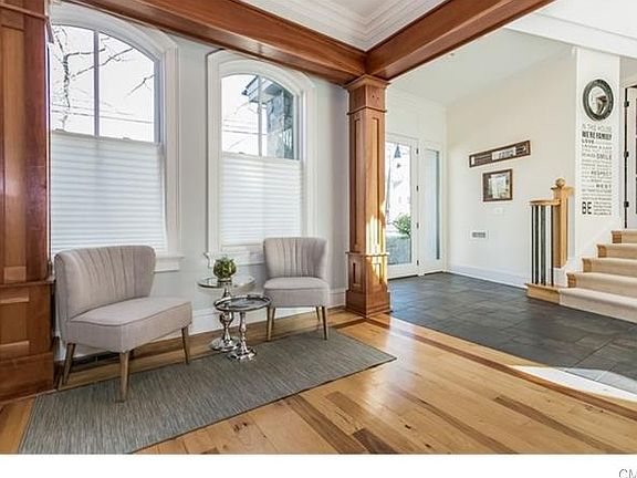 Stunning custom 2006 re-build w/2-story sunlit foyer. Sitting room flows to formal dining rm w/fp & incredible woodwork. Gorgeous gourmet kitchen & full pantry open to family room featuring french doors out to oversized screened-in porch. Relax or dine on porch overlooking flat 1 acre private yard, or step down to stone patio for grilling & entertaining. Features a bright bonus fam rm w/built-ins & coffered ceiling w/private terrace on south side of home that lets in light through custom stained-glass window. 2nd flr Generous Master Suite w/balcony, w-in closet and spa bth w/steam & whirlpl, 2 large bds & hall bth, laundry rm & lots of closet space. LL guest suite & rec rm w/fp, wetbar & movie screen. Wlk to train & town!