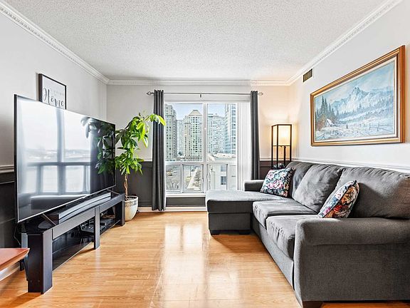 Welcome Home To This Spectacular & Unique 2Bed 1Bath Corner Unit In One Of The Most Convenient Locations! Features: Quartz Counter & Ceramic Backsplash In Kitchen, Wainscoting, Crown Moulding, Laminate Flr, Ensuite Laundry And 1 Parking & Locker. Maintenance Fee Includes All Utilities! Well Managed Bldg W/ Superb Amenities: 24Hr Concierge, Gym, Games Rm, Sauna, Pool & Much More! Less Than 1Min Drive To Hwy 401 & Scarborough Twn Cntr & Steps To Public Transit.