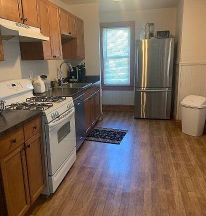 Front porch, washer and dryer in unit, new windows, great closets, freshly painted, refinished hardwood floors, new refrigerator and dw, beautiful rug runners on all stairs and hallways. Great location close to restaurants and hi speed line. Owner pays water and sewer, tenant pays gas (heat and cooking) and electric for lights and window air conditioners.