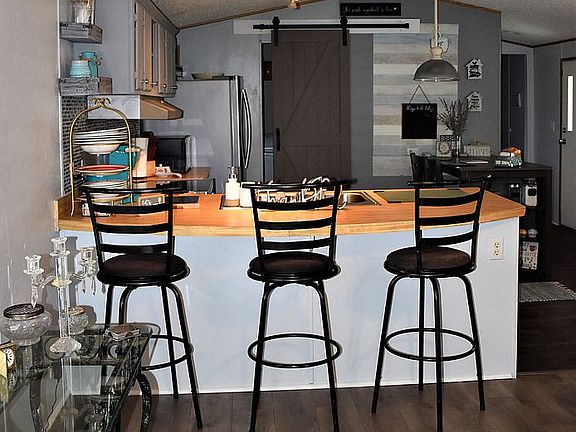 CASH ONLY on this gorgeous 3 bedroom, 2 bath home on a land lease. Fully remodeled kitchen and baths with open living areas and split bedroom floorplan. Luxury vinyl plank flooring throughout living room, kitchen, dining, and the master bedroom. Brand new kitchen appliance package includes custom refrigerator and Samsung smart stove featuring wi-fi enabled features, convection oven, and air fryer in one! New counters, backsplash, and updated lighting accent the heart of the home. Rounded breakfast bar allows for extra seating and the built-in dining nook offers the perfect combination of space, style, and storage. Spacious walk-in laundry behind sliding barn door with ample room for utility and pantry. Washer and Dryer remain. Incredible master suite is privately situated on one end of the home where you will find a walk-in closet, and fully remodeled bath with large double vanity and 12x8 tile walk-in shower. At the opposite end of the home are two large secondary bedrooms with a full bath in the hallway. Beautiful lot and outside storage shed remains. Current Land lease is $240/mth and requires a background check and third-party approval. Land Lease includes upkeep of the yard and septic maintenance. Low maintenance living located in a popular Fountain Inn location with easy access to downtown, I-385 and Greenville. Serious cash buyers only. For more information or to schedule a viewing, please contact Vincent Mastrolillo 8646167086