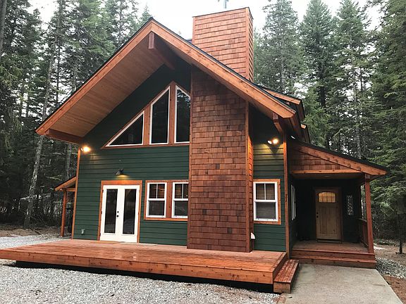 Chalet style, 2 bedroom, 2 bath with loft. Large wood burning fireplace, pine vaulted ceilings, hardwood floors, heated tile floors in bathrooms, granite countertops, stainless appliances. Home is in a private setting at the end of a paved cul de sac. Located only a half hour from Leavenworth and Stevens Pass ski area. 3 minutes to beautiful Lake Wenatchee.