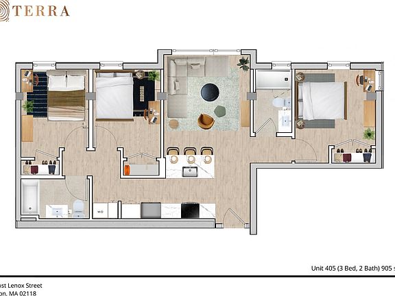 This 905 square foot apartment home has 3 bedrooms and 2.0 bathrooms. This home is located at 11 Lenox St #405COPY, Boston, MA 02118.