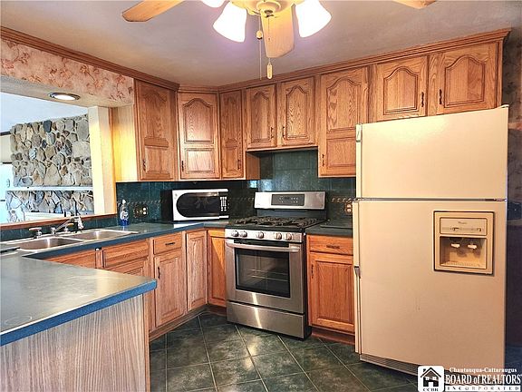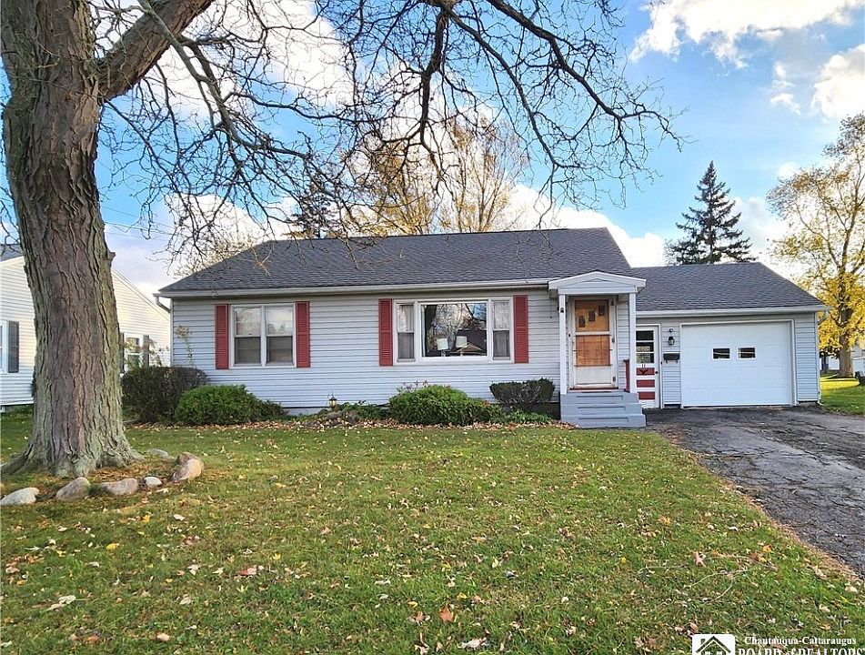 This lovely 3-bedroom/1-bath ranch is located in a quiet neighborhood and within walking distance to SUNY Fredonia. Although the data shows 1,272 sq. ft., the family room addition makes it more like 1,600 sq. ft. It features eat-in kitchen with oak cabinets, Corian countertops, and ceramic tile floor; large family room with waterproof laminate floor, fieldstone wood-burning fireplace w/gas starter, ceiling fan, and patio door to back deck; plaster ceilings in most rooms; beautiful hardwood floors; current living room could be used as a dining room; built-in linen/storage closet in hallway; newer roof; older furnace; full, dry, freshly painted basement. Sold as is.