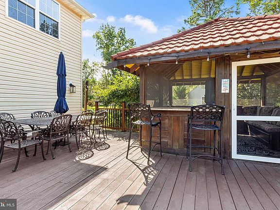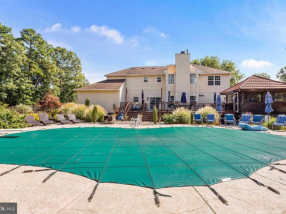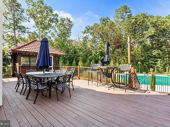 Nestled on an exquisitely designed 1-acre lot with an inground pool, mahogany deck, and gazebo lends well for a great spot for entertaining and family enjoyment. This updated Colonial offers 5 Bedrooms, 3 Full Bathrooms, and 3 Car Attached Garage. Tastefully upgraded with neutral color pallet, cohesive durable engineered hardwood floors throughout, and open concept kitchen and family room make this home shine. Enter into this home with a stunning grand foyer with arched openings to the Formal Dining and Formal Living Room. Leading into the family room features cathedral ceilings, wall to ceiling windows adjacent to the wood-burning fireplace, with open concept design to the breakfast area, and kitchen. The kitchen features ample cabinet space, stainless steel appliance package, a large pantry, and a kitchen island. From the kitchen, sliding glass doors lead you onto the mahogany deck with a gazebo and fantastic views of the spacious and private backyard. Off from the kitchen is another storage closet, main floor washer and dryer, and access to the garage. The main floor also includes a bonus 5th bedroom and full bathroom for an in law or guest section of the home. The upper level includes 4 generously sized bedrooms, a full bathroom with double vanity, and a master suite. The master bedroom includes a tray ceiling, two full walk-in closets, and a full master bathroom. Onto the upper level hallway is open down to the foyer and the 2 story family room area. The basement is spacious for storage or extra finishes. While the home has many wonderful features and upgrades, the backyard is a great staycation! The large deck with gazebo for entertaining, the inground pool, custom landscaping features, fenced in yard, separate fenced pet area, extra plantings for privacy, and much more! This home includes 2 Zoned Heating and Central Air Conditioning for efficiency. This home is a must see! Close to Route 195, Turnpike, Shopping and eating establishments.
