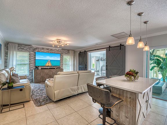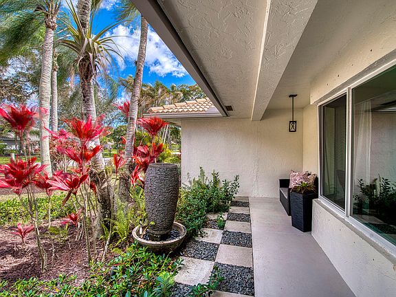 Beautifully updated, true Florida 4BR/2BA CBS pool home surrounded by a tropical oasis, located in the highly sought-after community of PGA National. The open plan interior has a family atmosphere and flows easily from the living area to the kitchen and out onto the vast patio. Desirable features include tiled and engineered wood flooring throughout, oversized windows and sliding glass doors, upgraded lighting fixtures and ceiling fans, kitchen with ceiling-high cabinetry, newer stainless steel appliances including 2 ovens, tiled backsplash, and an amazing outdoor living area that includes a private fenced-in yard with newer landscaping, hot tub, cedar pergola, and covered lanai. Impact doors and windows.