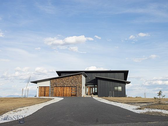 Embark on a serene retreat within the heart of Montana, where nestled amidst the picturesque landscape this home exudes a sense of tranquility & refinement, inviting you to indulge in an unparalleled living experience. Inspired by the minimalist aesthetics of Japanese architecture, this home embodies a harmonious fusion of clean lines, natural wood accents & expansive windows that frame breathtaking vistas of not one, but eight majestic mountain ranges - Bridger, Absaroka, Gallatin, Madison, Horseshoe Hills, Tobacco Root, Big Belt, and Elkhorn ranges - each offering a panoramic canvas of nature's grandeur. Upon entering, a custom-crafted Shou-Sugi-Ban & barnwood entry door sets the tone for the exceptional craftsmanship & attention to detail found throughout the residence. The foyer, adorned with a steel awning, welcomes you into an open-concept sanctuary where 15-foot ceilings & an 8-foot triple glass door reveal the awe-inspiring silhouette of the Bridger Mountains. In the living area, a wood-burning fireplace serves as the focal point, while a 72-inch ceiling fan ensures optimal comfort. Nestled within this haven, the SE main bedroom offers unparalleled sunrise views through large windows & boasts a luxurious ensuite complete with a spacious walk-in tile shower, dual vanities, & bidet toilet for added indulgence. The kitchen, a culinary haven designed for both functionality & style, features soft-close cabinets, custom concrete countertops & top-of-the-line appliances including a Thor 6-burner gas cooktop with griddle & built-in Bosch appliances. A steel bar top adds a touch of elegance, perfect for casual dining or entertaining guests. Venture downstairs to discover an unfinished basement retreat ready for personal tailoring. With a 54-foot unobstructed floorspace, this area offers limitless possibilities, from a gym room to a partially finished bedroom, bathroom & multi-use room. Custom matching barnwood sliding doors & a 3000lb steel I-beam staircase add to the charm & functionality of the space. Outside, a 480 sqft covered patio constructed with Fiberon decking provides the ideal setting for alfresco gatherings, while a large fire pit area beckons for evenings spent under the stars. Indulge in the ultimate Montana lifestyle, where the tranquility of nature meets the luxury of modern living.