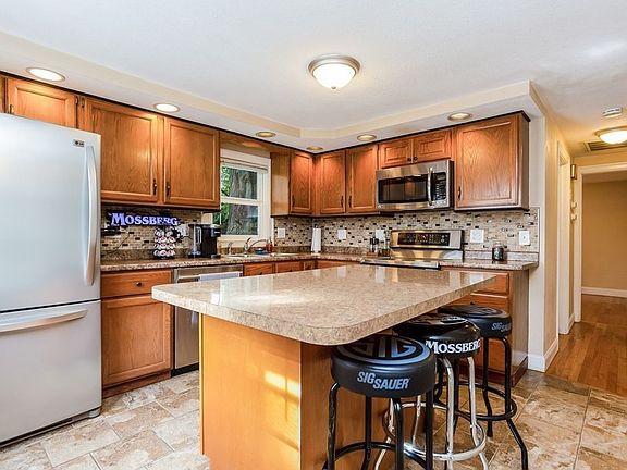 Location, Location, Location! These are the three words that matter most on this 7 Rm Ranch in a quiet area of town and abuts the gem of the community School Street Park and river front bike and walking path. The layout of this unique Ranch has a kitchen with a center island and stainless steel appliances which overlooks a family rm with plenty of natural light and ceramic tile flooring. The main floor also consist of two bedrooms and bathroom and then the downstairs of the home has an additional 400+ square feet of living space which is currently being used for another bedroom and full bath with a walk-in cedar closet. Let's head out to the backyard and you will see the deck and covered patio which all is walking distance for you to enjoy the park in your backyard.
