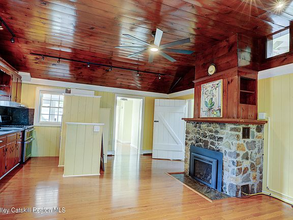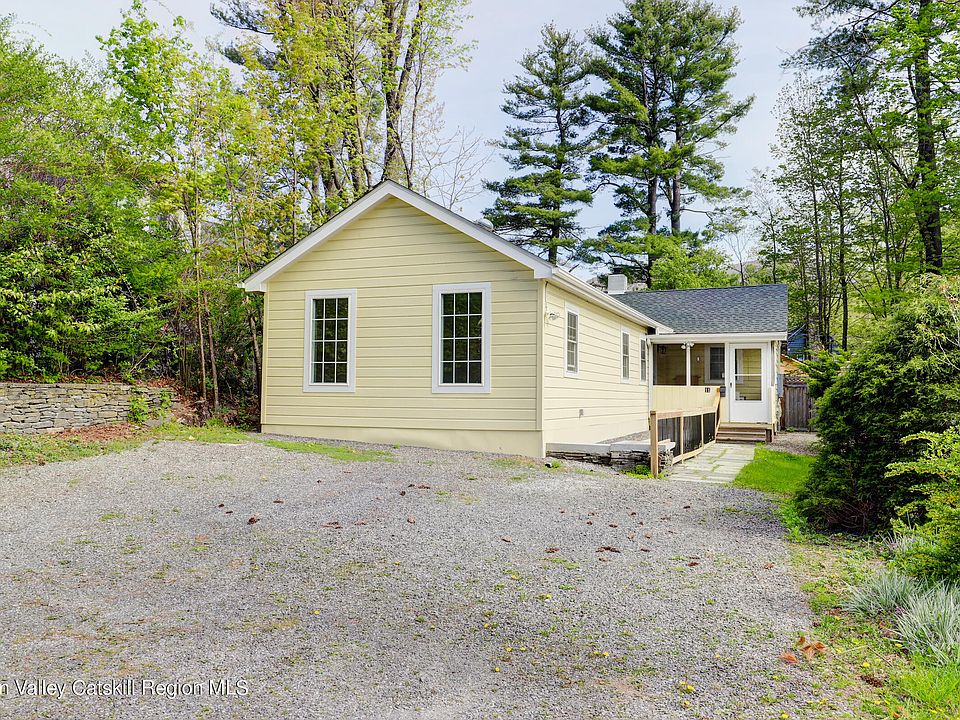 There is alot more than meets the eye in this charming Woodstock Gem. Located in the ''most famous little town in the world'', off Library Lane, it is literally steps away from Woodstock's wonderful boutiques, fabulous restaurants, yoga studios, and music and art venues that present a balance of nature's serene atmosphere with the convenience of local businesses. 11 Library Lane is an original 1930s cottage that was fully renovated and added onto in 2018. The result is a 1257 sq ft combination of one level living of vintage beauty and modern amenities. In your future 3 BR 2 Bath home, you will find high vaulted ceilings, an always warm environment due to 3 heating sources, oil baseboard, a propane insert fireplace in the Living Room and 4 Mitsubishi Split Units. The splits also provide A/C on the hot summer days. The Guest Bath has a Steam Shower and a Runtal Towel Warmer. The Primary Bath has a Kohler Cast Iron Soaking Tub and a Runtal Towel Warmer. Both bathrooms are tastefully tiled. Off the Galley Kitchen is a laundry closet that contains full-sized side by side Electrolux Washer and Dryer. There are also 2 screened-in porches, the back one with a view of Overlook, and a fenced-in backyard for privacy, and an outdoor shower. There is plenty of space for a sitting and party area as well as the ability to add onto the already existing flower beds and raised organic vegetable garden beds. You will feel safe knowing that you will never be without electricity due to a new Generac propane full house generator. All new windows, 2 skylights and a sun tube allow the natural light to bathe the interior. In addition, there are ceiling fans in every room for added light, comfort, air circulation and cooling. Don't miss out on this rare Woodstock Treasure. There is an OPEN HOUSE on this Saturday 5/11/24 from 11AM-1 PM.
