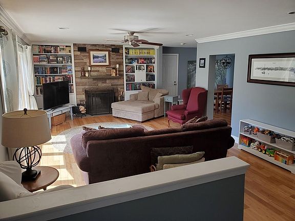 Beautiful, hip-roof ranch on a quiet Padanaram culdesac. This light & bright home has a living room w/ an oversized picture window, wood burning stone fireplace & custom, built in bookcases. The kitchen has stainless steel appliances & center island, w/ combination gas range/electric oven & opens to the living room, formal dining room & expansive deck. There are new ceiling fans & bamboo flooring in most rooms including the very generous bedrooms & master. Two full, ceramic tile baths & mostly finished basement w/ laundry, workshop & storage. Brand new central air (8/19) & single bay garage w/ lift, ample storage & convenient, interior entry. The fully fenced yard is beautifully landscaped & enjoys year round privacy w/ mature yew hedging. Combination of cedar shakes & stone facade w/ mostly new windows & newer architectural roof. All of this in the beach community of South Dartmouth & within walking distance of shops, restaurants & harbor. First showings on Monday, April 20th.